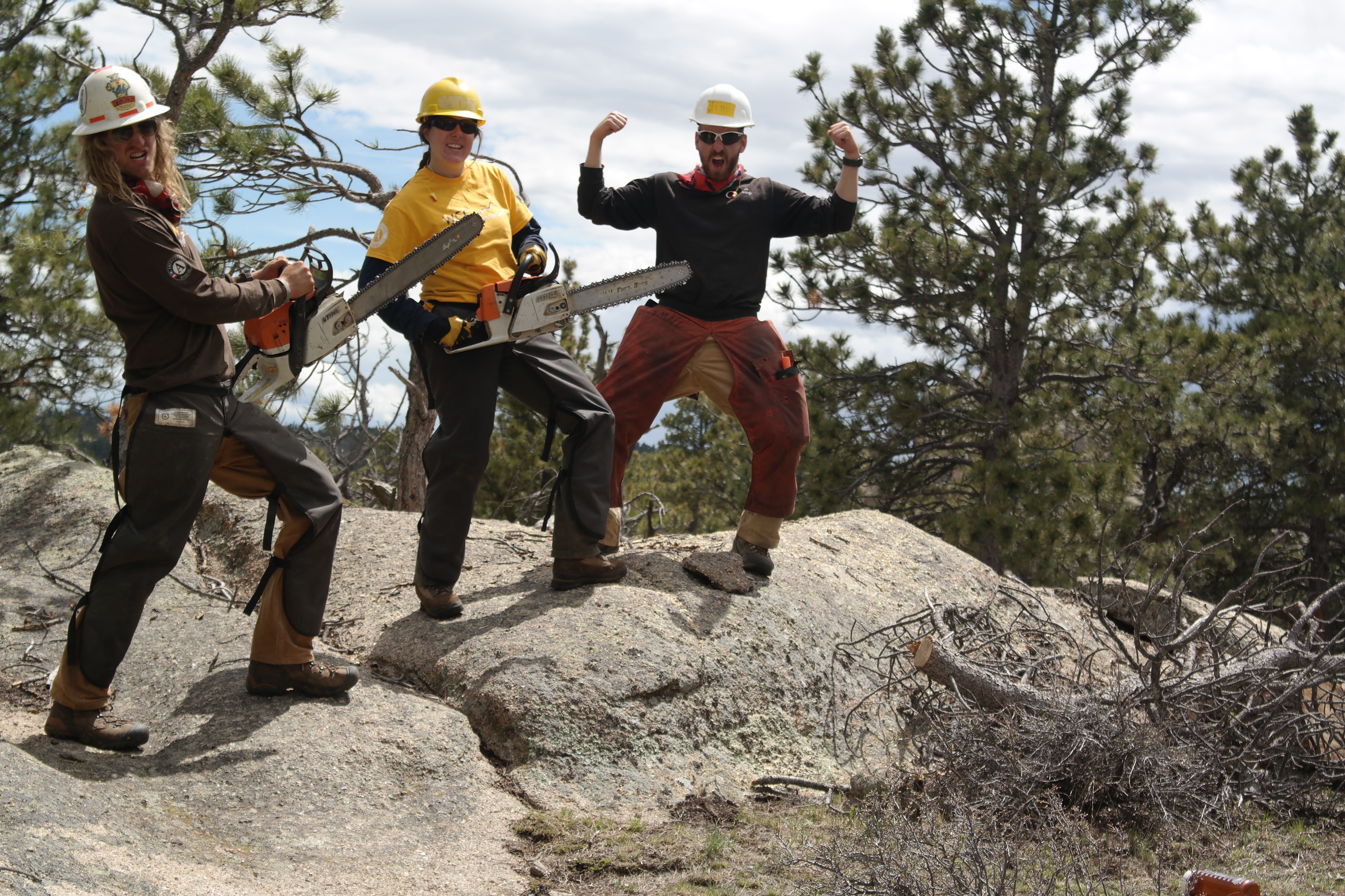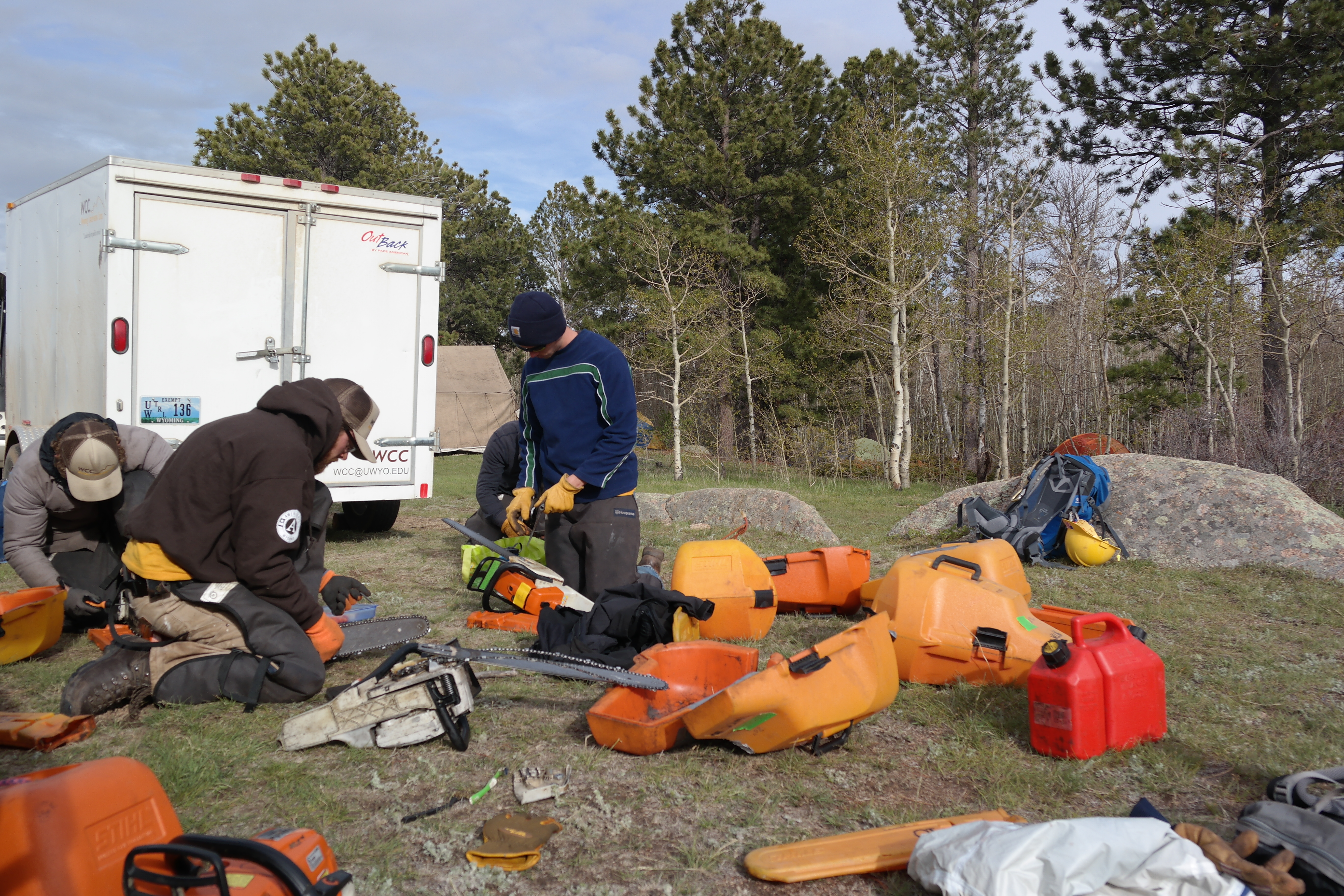 Orientation 2015 – Curt Gowdy State Park was a big success thanks to all the leadership of our crew leaders and our fantastic crew members! Our members learned new skills such as bucking and limbing with our chainsaws, how to build International Mountain Biking Association (IMBA) standard single track trail tread, rock retaining walls, and four strand high tinsel wildlife friendly fencing.We were even honored with the task of refurbishing the tread for the big Gowdy Grinder that weekend. A big thanks to Paul Gritten with Wyoming State Parks, Curt Gowdy State Park for hosting us, and Mindy Meade from Partners for Fish and Wildlife – US Fish and Wildlife Service for helping put our orientation trainings together.