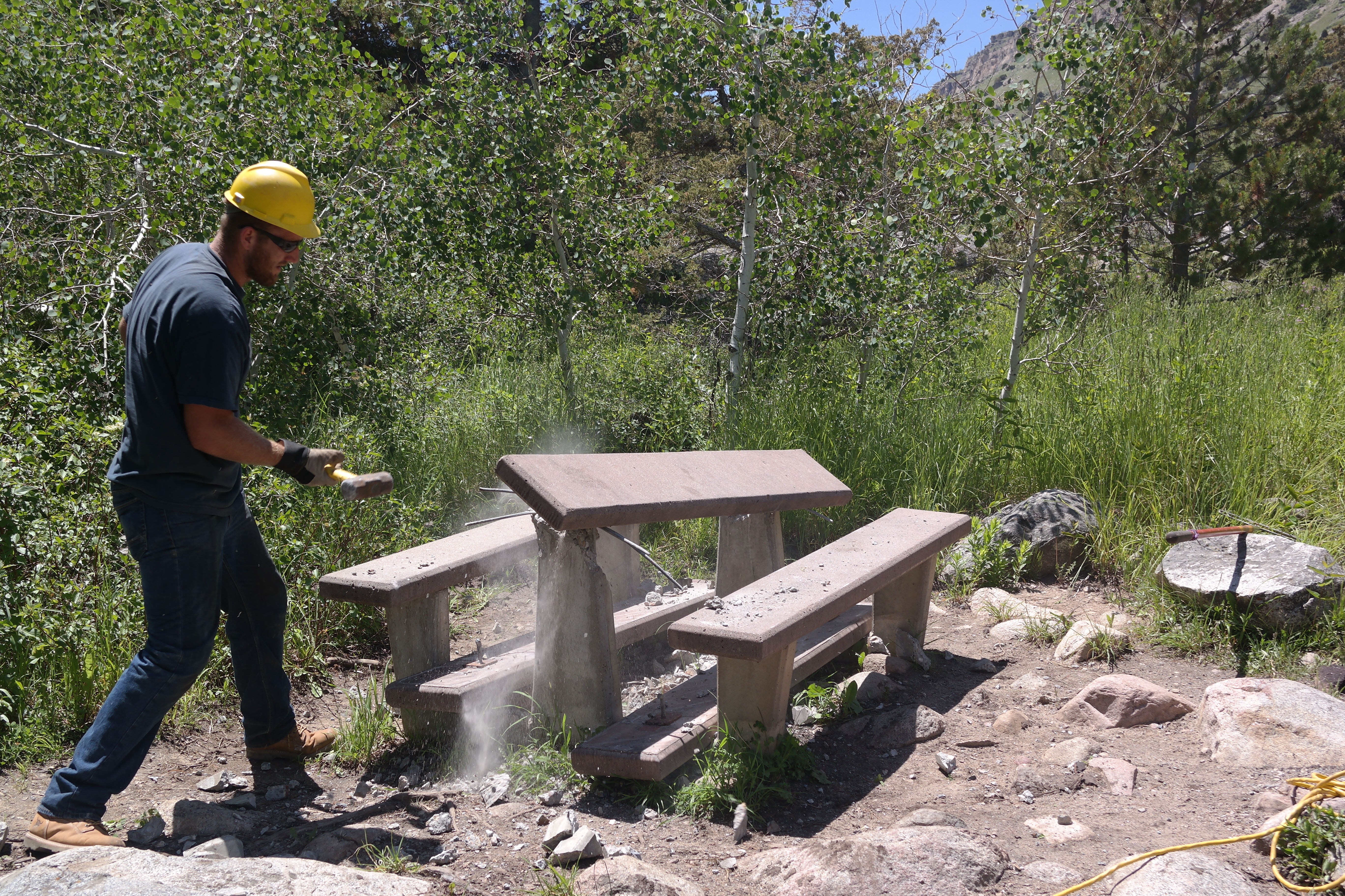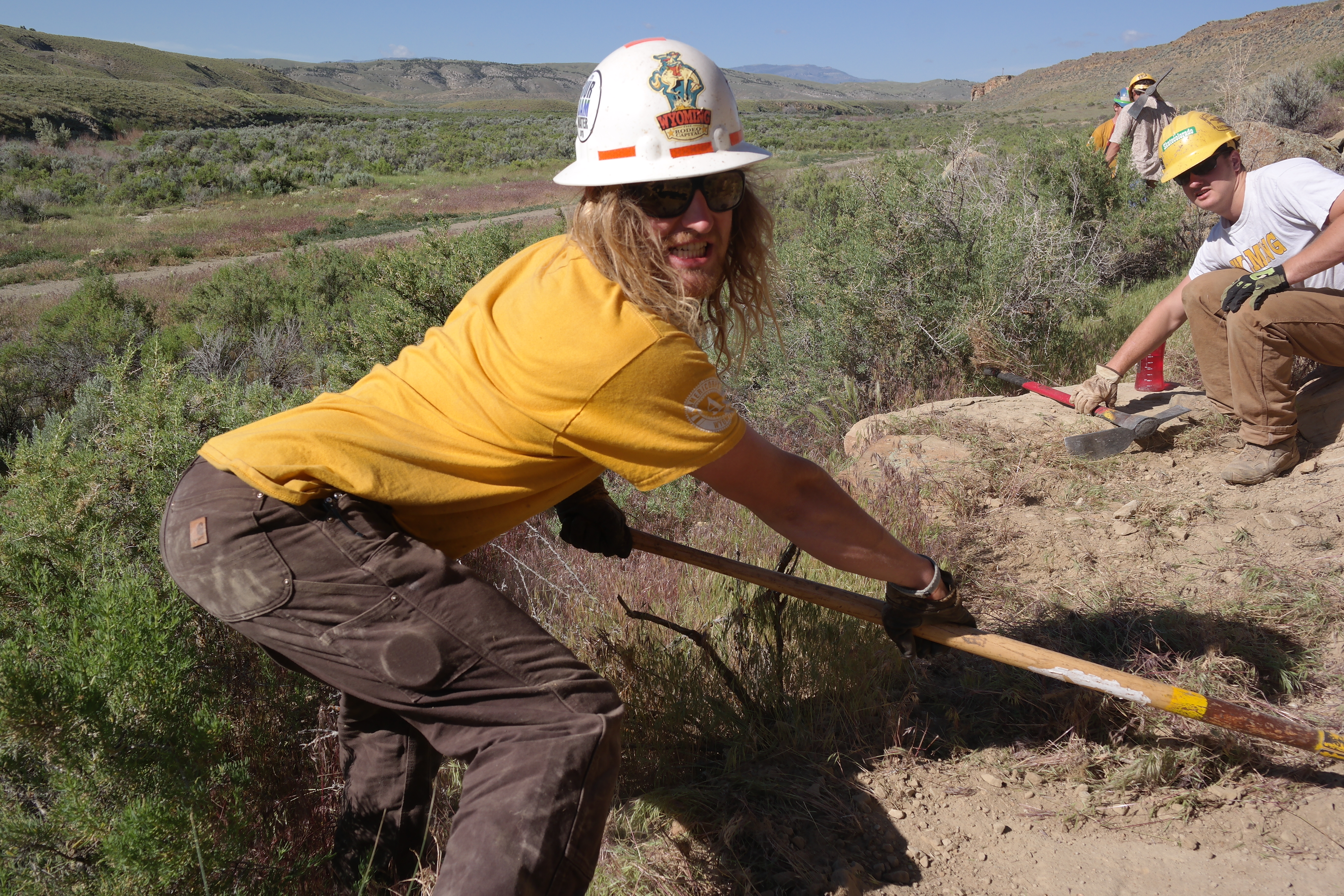 Crew 2 – Busted out some serious amount of labor in Sinks Canyon State Park building tent pads and picnic areas. The work including demoing concrete picnic tables and moving massive boulders. The agency contact thought they would onlyget 1 camping pad done a day but the crew did THREE A DAY! Because they were at Sinks, they rock climbed on their time off as well as hiked. Their education day included an amazing flora/fauna geology hike exploring the alpine meadows on the north slope of the hills by park staff. They also hiked to a secret cave sink…shhhh.