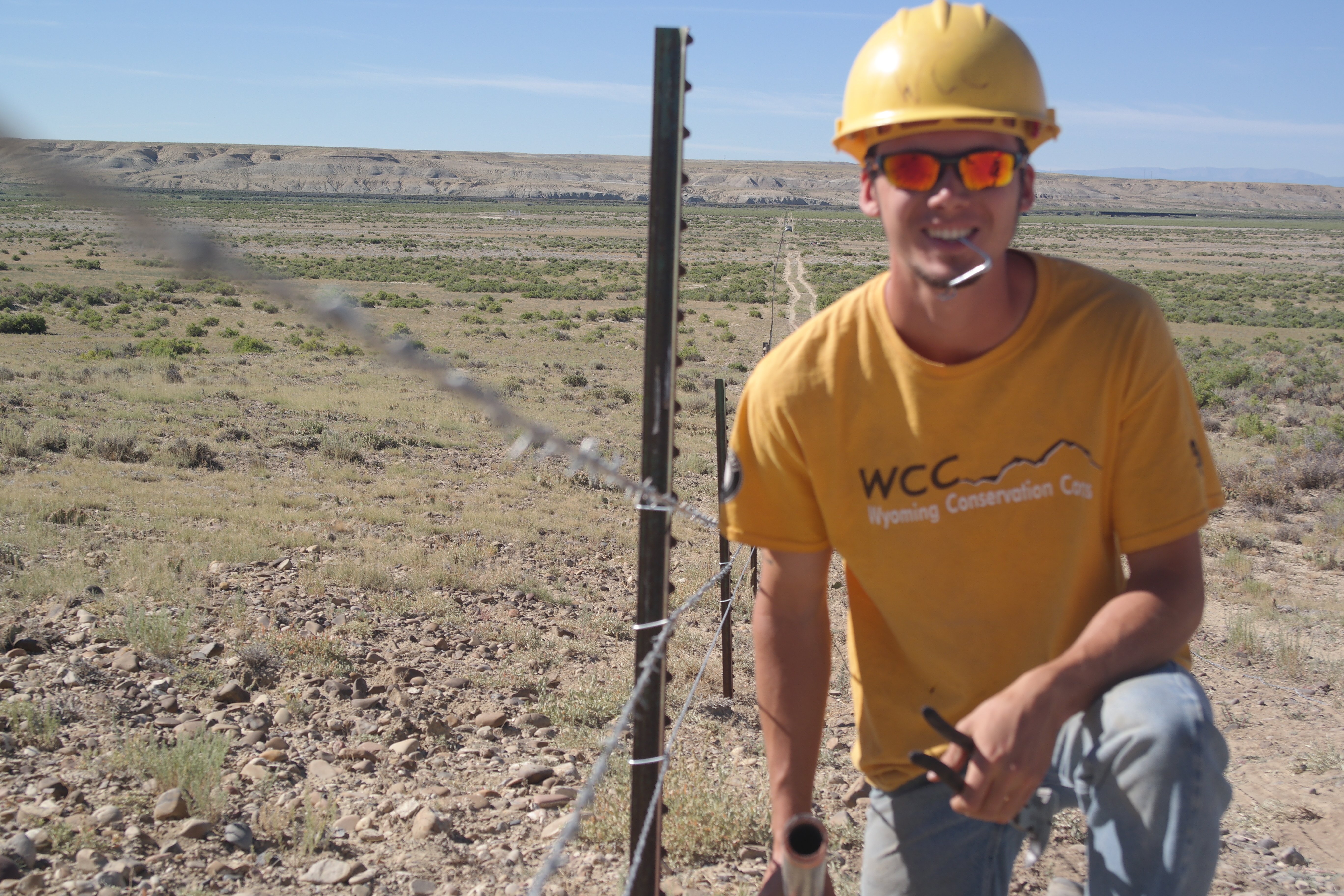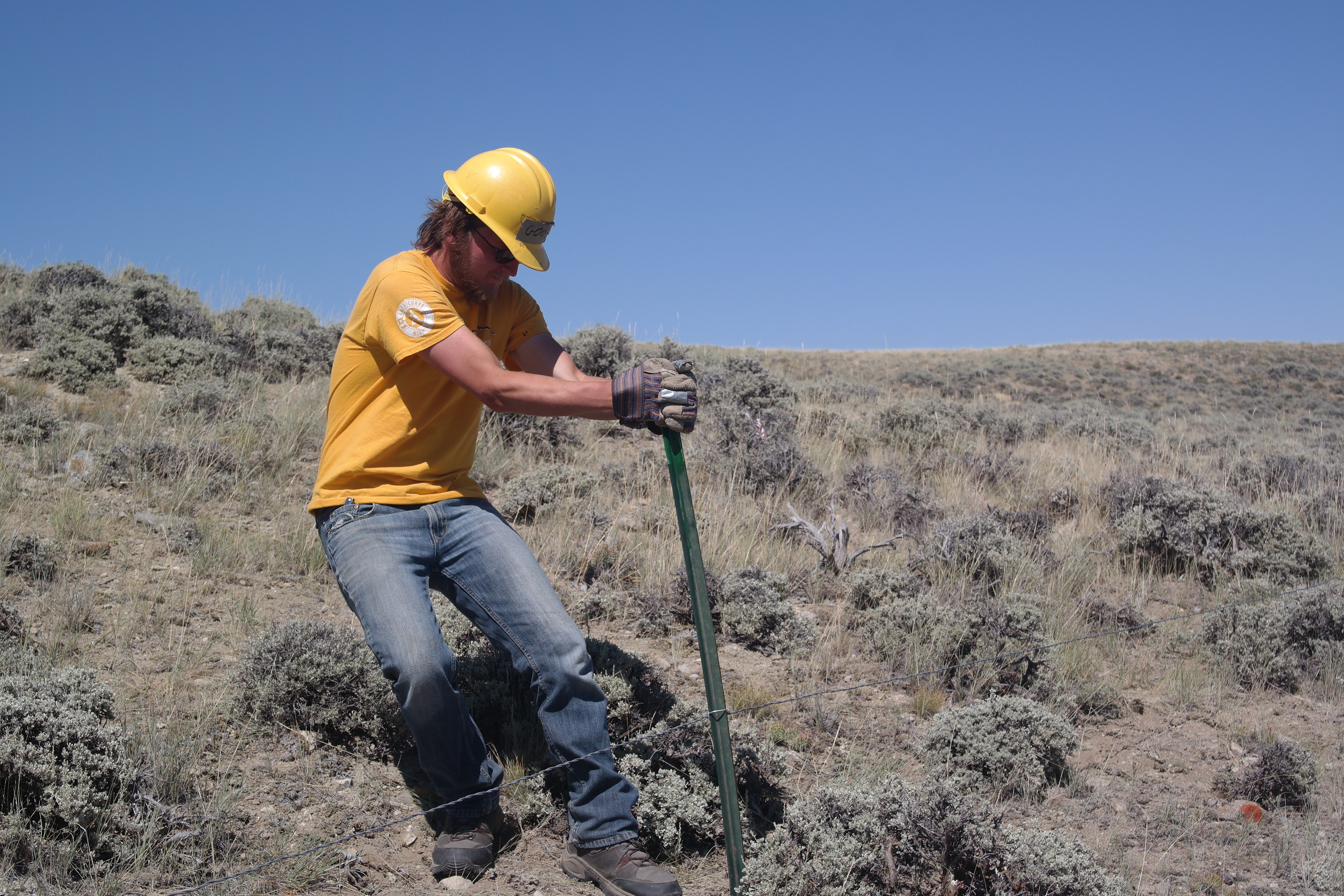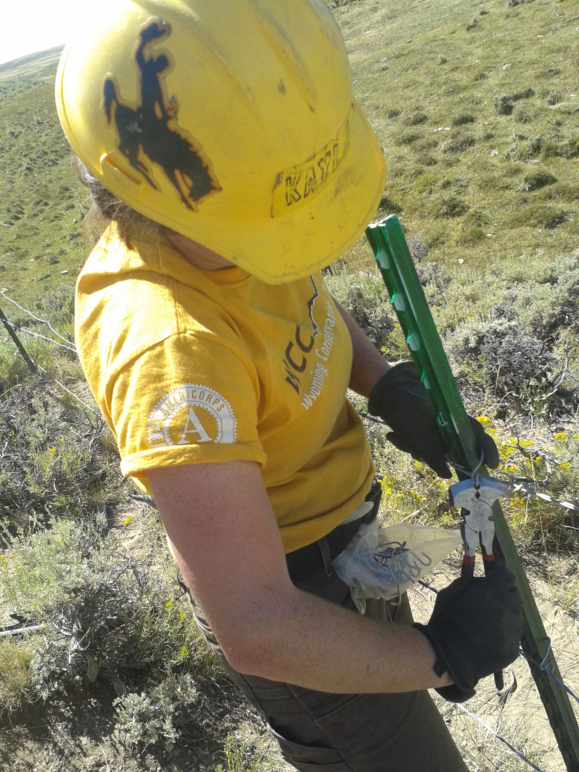 Crew 2 – Tronox, BLM, North of Green River near Seedskadee National Wildlife Refuge, Wyoming July 27-August 5 – Completing nearly 3 miles of difficult fencing through the harsh big empty of central Wyoming, crew 2 should be very proud. Not only did the crew have to repair H-Braces and replace t-posts, but they had to rip out all the old woven wire that was not wildlife friendly and replace it with a smooth bottom wire. One of our crew members, Christian Marr (C-Marr as she is called on her crew) took meticulous and thoughtful wildlife surveys of the riparian areas finding bones and possible flakes from ancient stone tools.