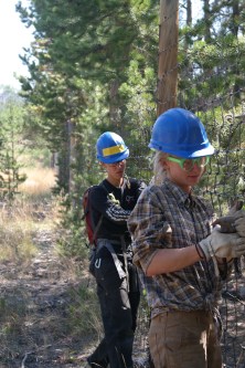 For this hitch, our team headed just north of Pinedale area to work on wildlife fencing near the boundaries of the Shoshone National Forest and private land at the foot of the legendary Wind River Range. Working with Game and Fish, the crew maintained miles of fence which included felling hundreds of trees near the fence line including many hanging on the fence itself. The fence separates private land with public, and is designed to funnel elk traffic to safe corridors while allowing smaller ungulates and animals to traverse under the fence.