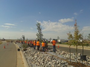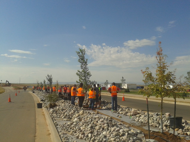 University R.A.s Plant Trees in Front of New High School