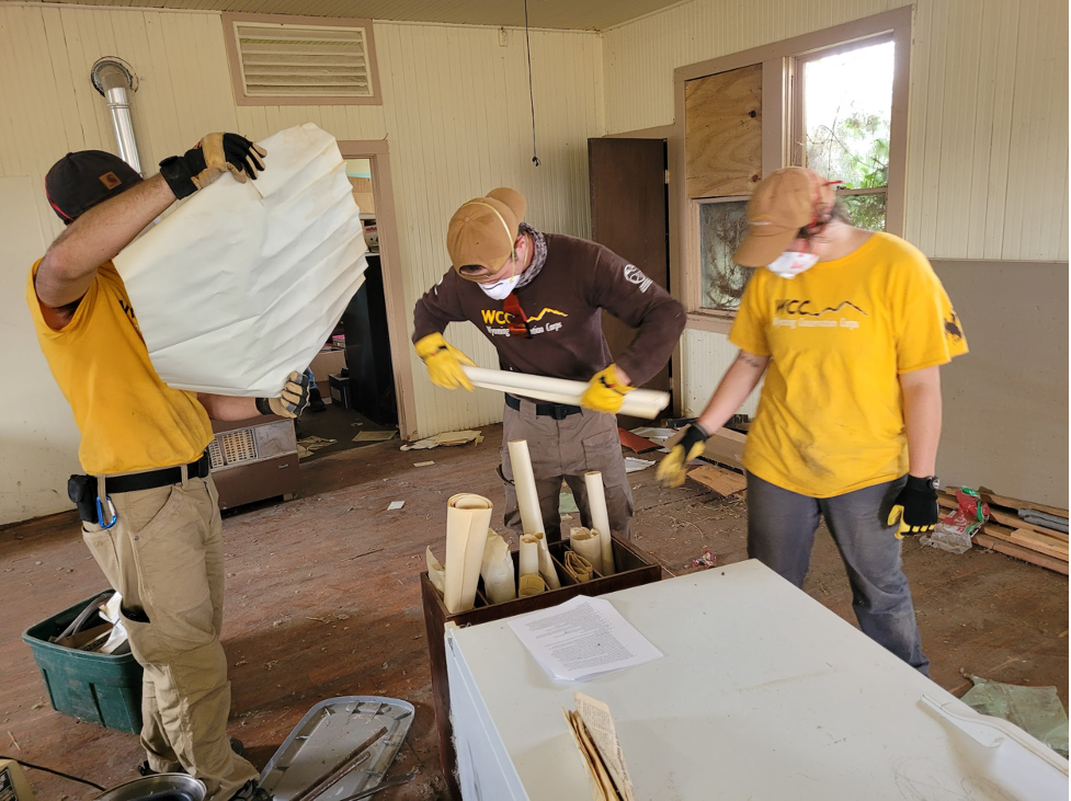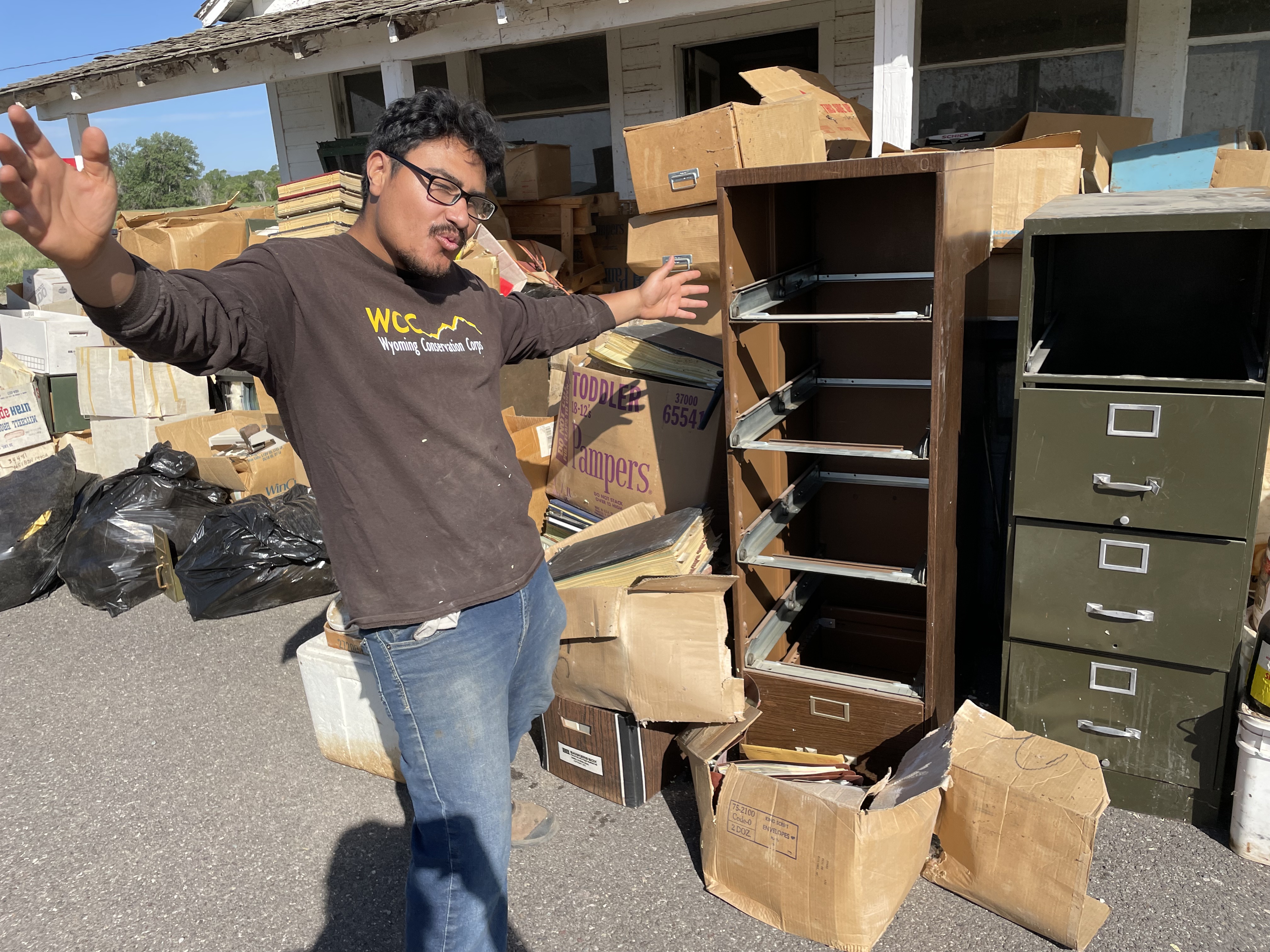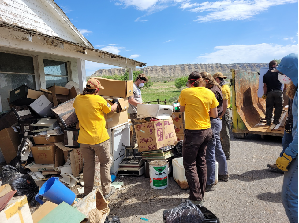 For Hitch 3, Crew 2 headed up to Arapaho Ranch to work alongside Crew 1 to help clean up the historic Arapaho Ranch. Crew 2 began work by cleaning out and saving historical documents and artifacts from various sites and buildings around Arapaho Ranch. They also repainted and cleaned the C-Store windows, doors, several benches, and fence entry ways. Afterwards, Crew 2 rebuilt approx. 400 ft of old fence and made it wildlife friendly. Additionally, they trimmed dead tree branches along the entrance to the Mansion. All the buildings Crew 2 cleaned up were filled with historic documents and artifacts that would’ve been lost if not for their hard work.