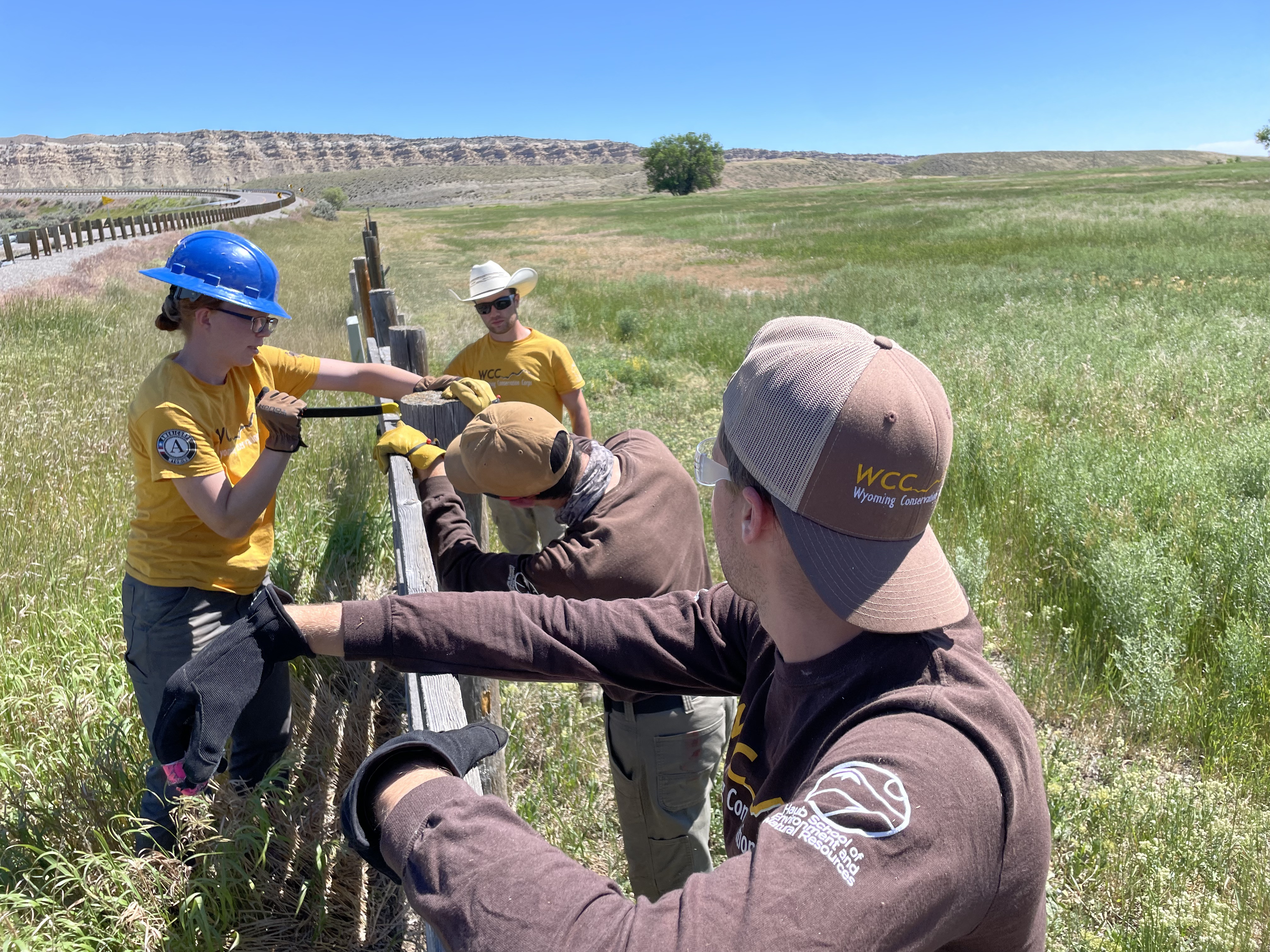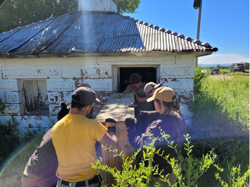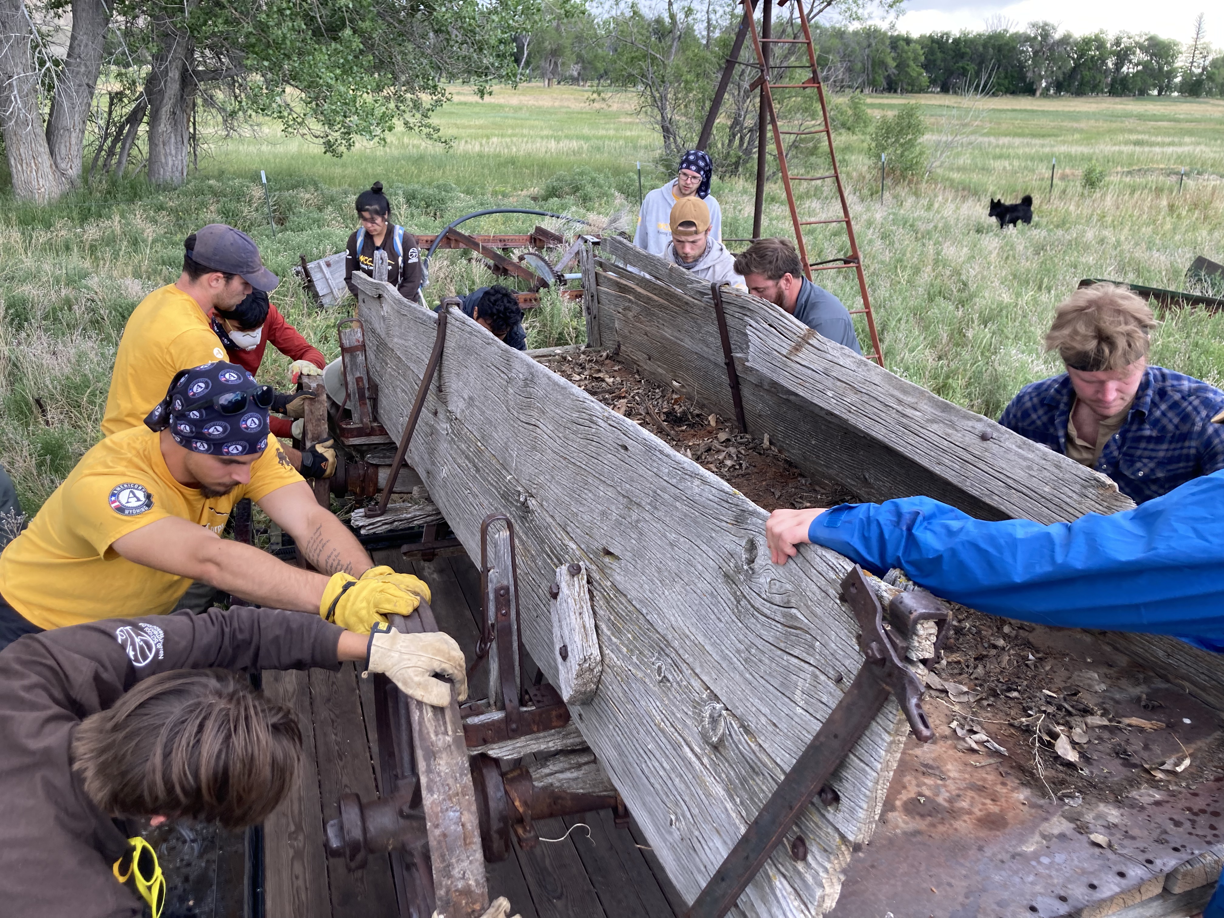 For Hitch 3, Crew 1 headed up to the Wind River Reservation to begin work on the historic Arapaho Ranch. While at Arapaho Ranch Crew 1 worked alongside Crew 2 to accomplish a variety of projects across the ranch. Much of Crew 1’s time was spent conducting historical preservation on old buildings across the ranch. Projects included; clearing out, cleaning, organizing, and painting the old C-Store, resealing windows, cleaning up the Blacksmith Shop and Ice House, and repairing the doors to the granary. Other work included old fence deconstruction and new fence construction, tree trimming and weed eating around the old Mansion and other historical buildings.