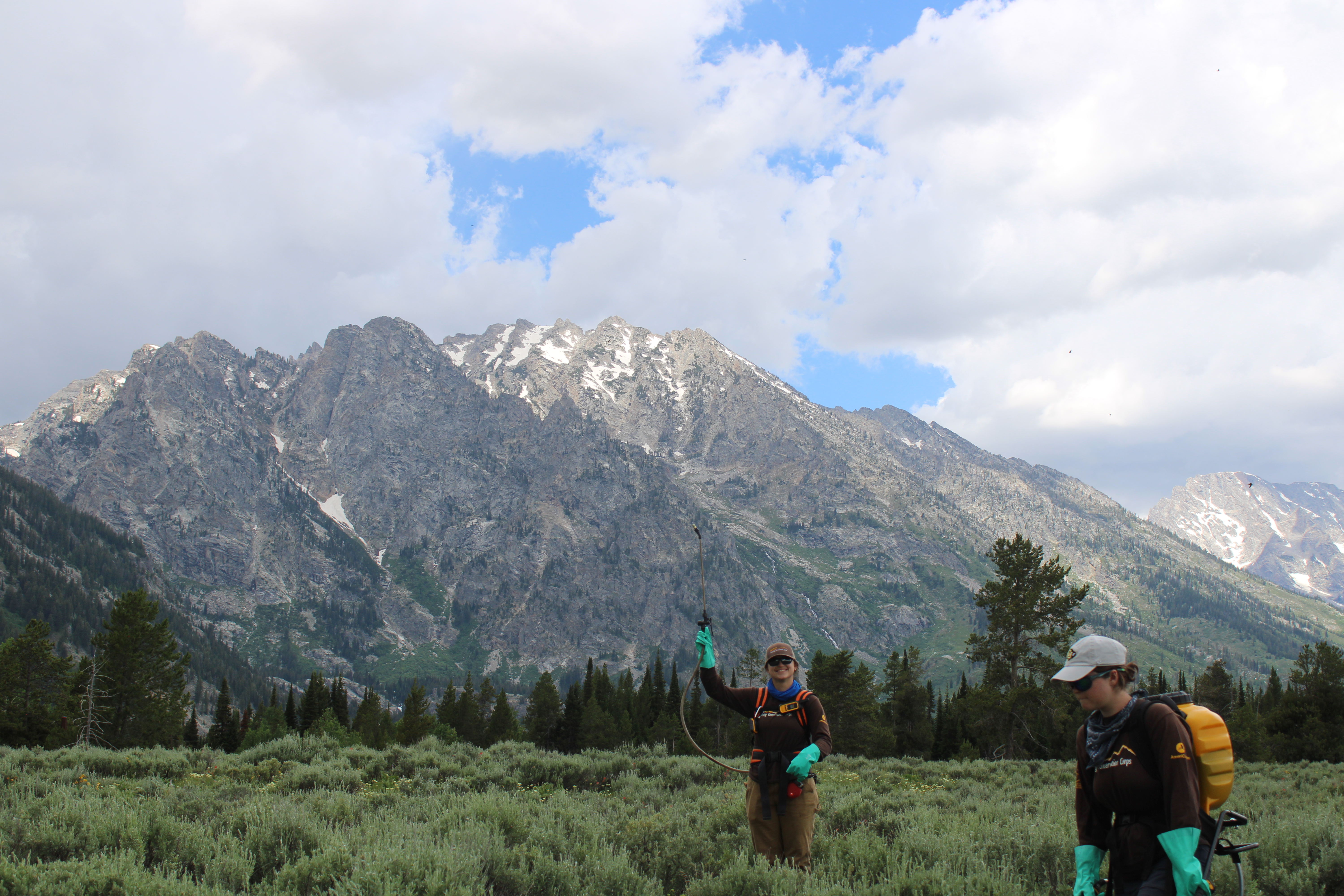 The All-Women’s Crew kicked off Hitch 3 by making the long drive back to Grand Teton National Park. While at Grand Teton NP the All-Women’s Crew continued invasive species removal and mitigation throughout the park. They spent a majority of their time spraying for invasive species along the bike path from Jenny Lake to the Headquarters Building in Moose. Targeted species included: Cheatgrass, Knapweed, Hounds Tongue, Muck Thistle, Canadian Thistle, and Yellow Sweet Clover.