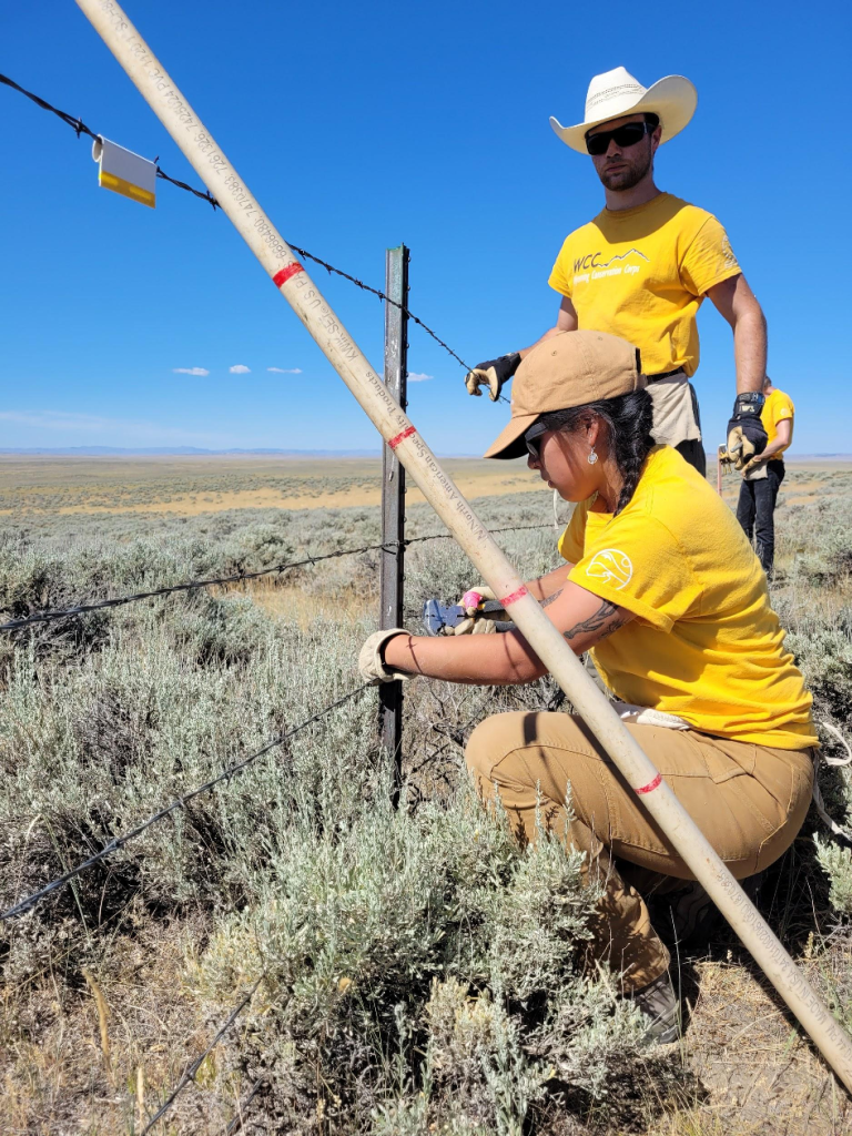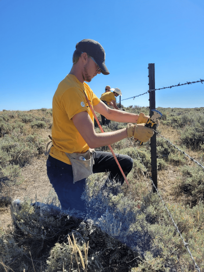 For Hitch 4, Crew 1 headed up to Muddy Mountain to work alongside the Casper BLM Field Office to build, repair, and replace old fencing. While on Muddy Mountain Crew 1 repaired 2.3 miles of barbed wire fencing by removing 3 of the 6 strands of barbed wire and replaced it with new smooth wire to make the fence Wildlife Friendly.