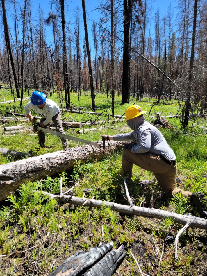 For Hitch 3, the Veterans Trail Crew headed up to the Platte River Wilderness Area where they began work on 3 different trails that were affected by the Mullen Fire. During their time in the Wilderness Area, they worked long days hiking and using hand saws and crosscut saws to clear the trail corridor of fallen trees and widow makers.