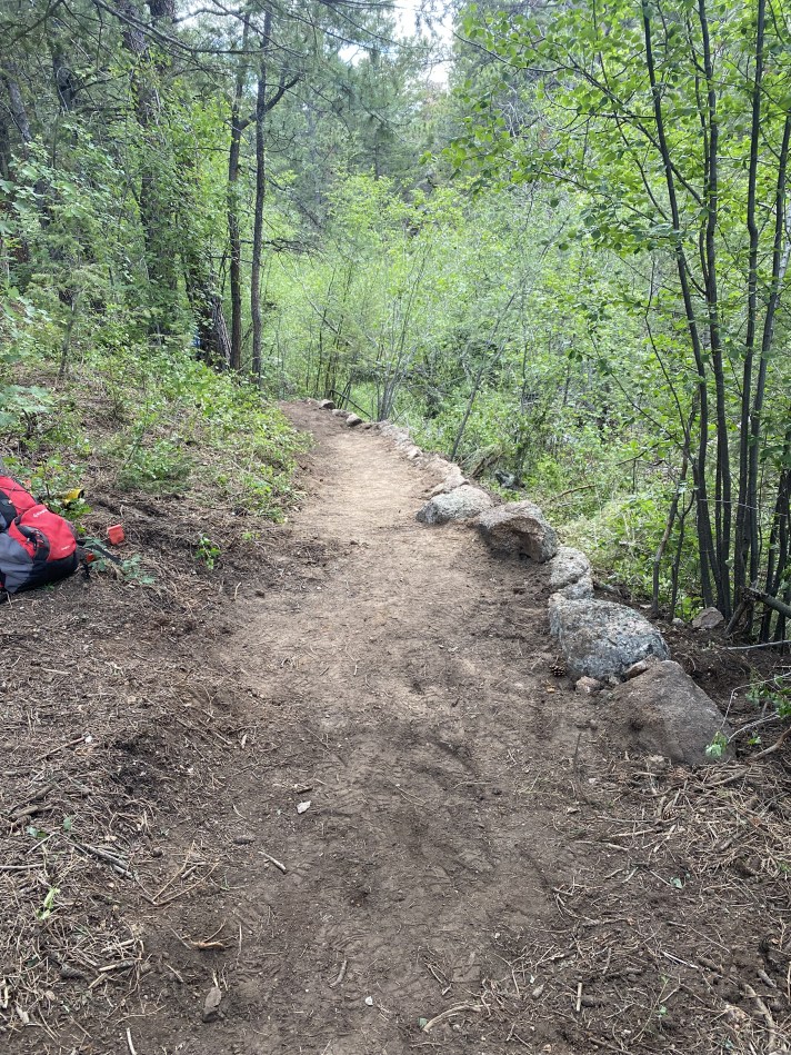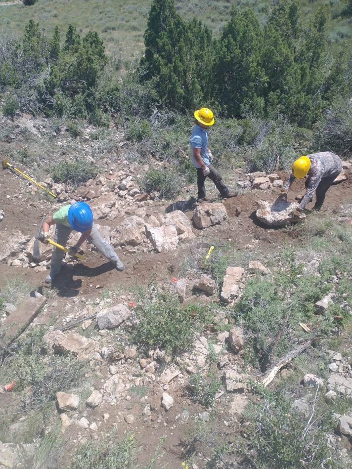 For Hitch 3, Crew 4 had the short trip up to Pilot Hill to continue construction on Trail 27 where they spent a vast majority of their time moving rocks for retaining walls and tread armor. Afterwards they cleared the trail corridor of Juniper trees and bushes for future work on the trail. The remainder of their hitch was spent digging new trail and continuing rock work along the trail.