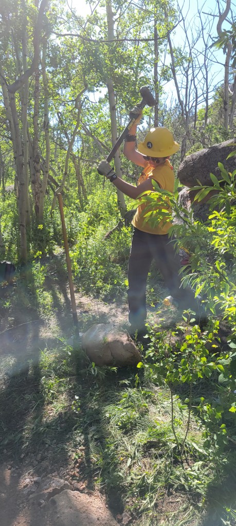 For Hitch 3, Crew 2 headed up to Vedauwoo to continue trail restoration on Turtle Rock Trail. During their time their Crew 2 worked on turnpikes in poor drainage areas to make the trail more sustainable. They also installed check steps, rock cairns, and cleared trail corridor.