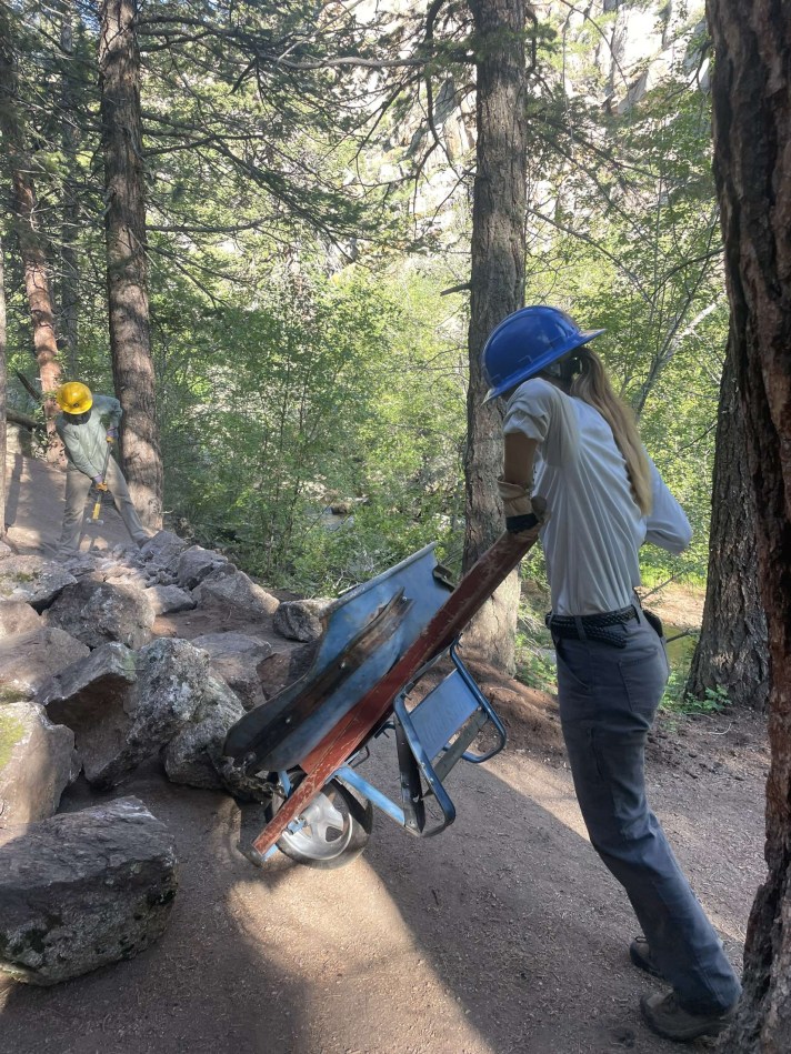 For Hitch 3, Crew 1 had the short drive up to Curt Gowdy State Park to do trail remediation on Crow Creek Trail. During their time at curt Gowdy they moved a lot of rocks for future projects and work. Majority of their time was spent remediating trail, building new fence, Hidden Falls trail reroute, and rock work.