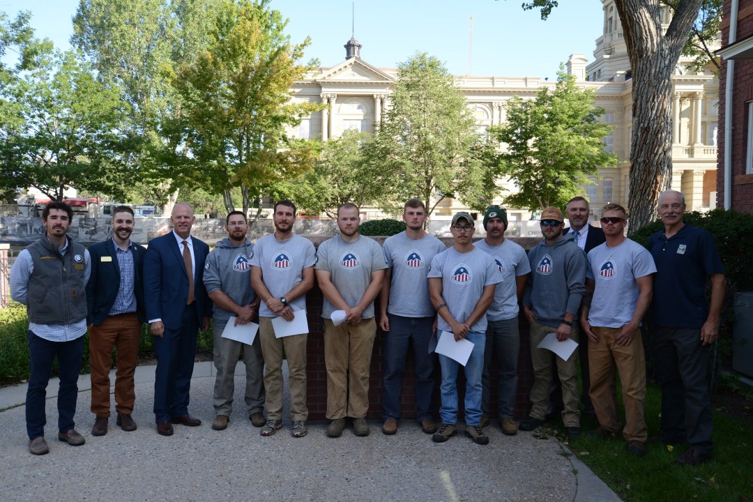 August 17th - Cheyenne, WY - The WCC's inaugural Wyoming Veterans Trail Crew (WyVTC) met with Gov. Matt Mead and some of his staff as a thank you for the work they have done this summer. Trails are a vital infrastructure element to tourism and community in Wyoming. And, as the Governor reminded us of … Continue reading The WyVTC Meets the Governor