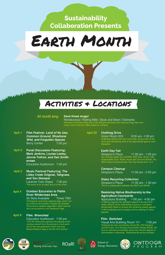 The Wyoming Conservation Corps Crew Leaders will be hosting a glass recycling collection April 22nd in celebration of Earth Day. This individual collection will be in partnership with the awesome folks in ASUW - they're making it happen! WCC and ASUW will be collecting clear, brown, green (sort and save time) glass at Simpson's Plaza … Continue reading Glass Recycling: Earth Day!